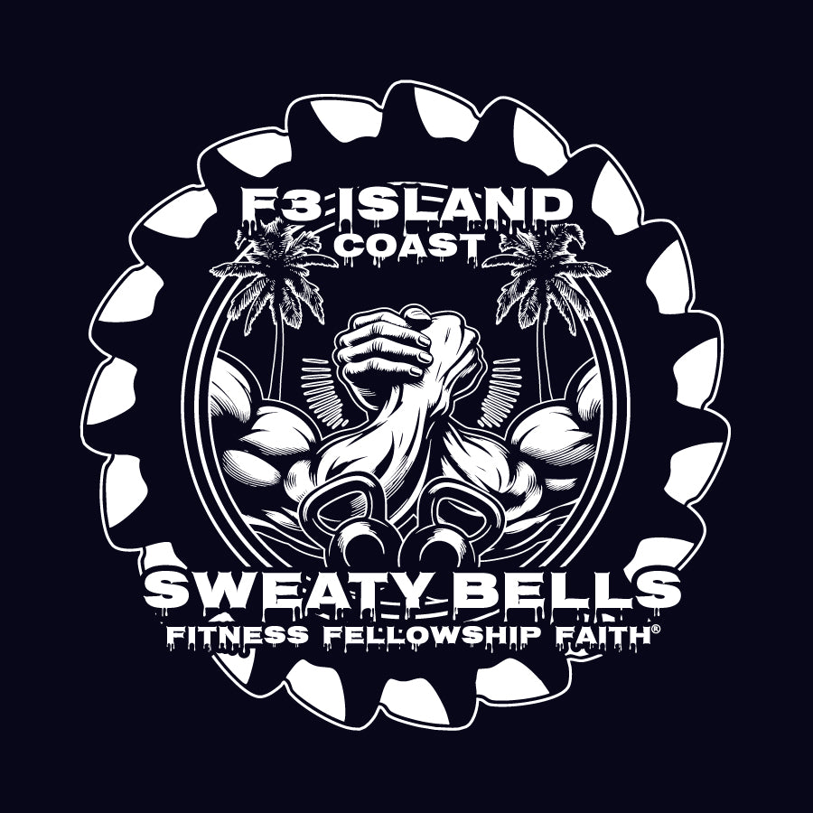 Back Logo:  F3 Island Coast Sweaty Bells Logo (all styles below)